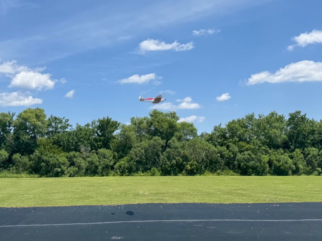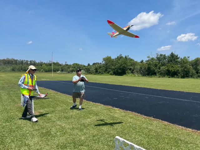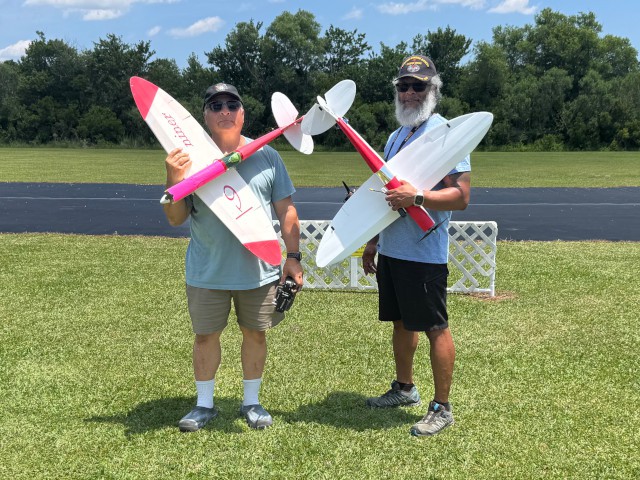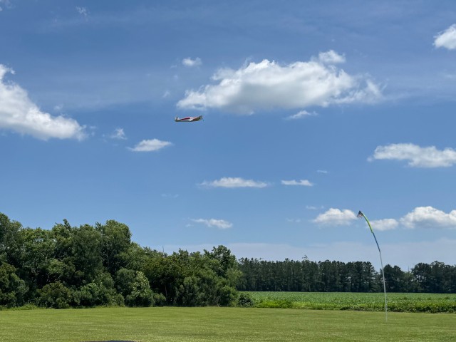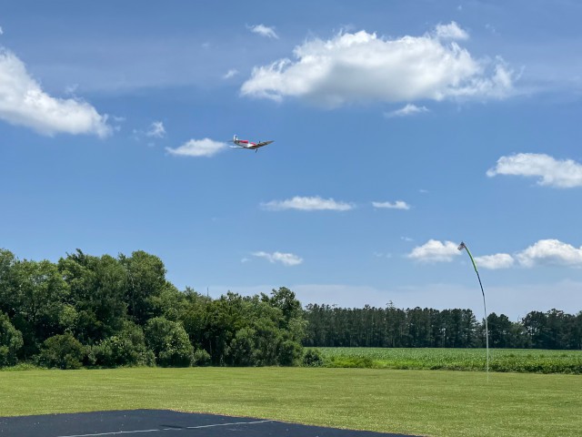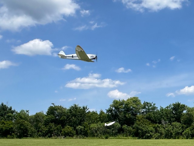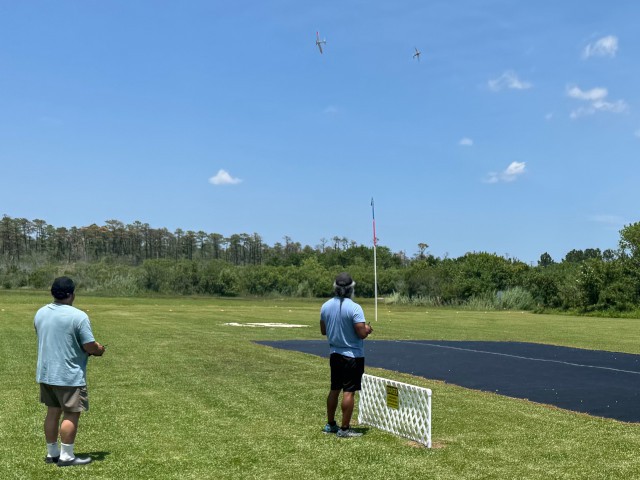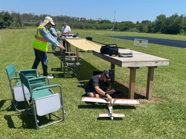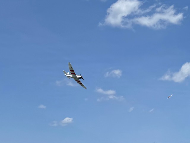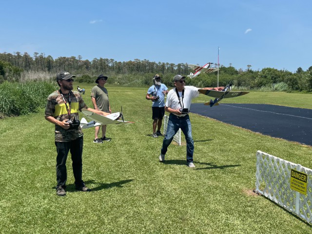 This year's races featured four club members and a pilot from the Hampton Roads Radio Control Club racing FliteTest Spitfires that each participant constructed in a figure-eight pattern around a pair of pylons, 300-feet apart. This was the second year for this event which consisted of three individual races in which the winners of each heat raced to determine the winner in the final event.
