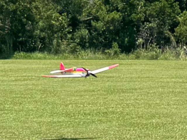 Thirteen club members and three guests met today at the field for some competitive flying for the 2025 First Flight Model Air Pylon Races.
