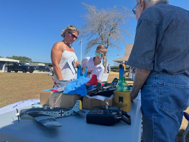 Grant Dick, Virgil Kee, and Robert Yanacek participated at the Victory Day Celebration at the Manteo Airport informing the public about our club, its activities, and the hobby of radio control model aviation.