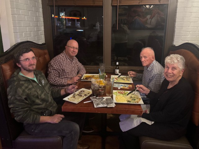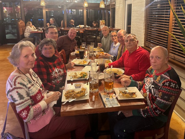 Seventeen members and guests attended our club's annual Christmas Party at Tres Tequilas Restaurante Mexicano in Kill Devil Hills. In attendance were: Frank and Emily Ausband; Pete and Rosemary Carros; Jim and Sharon Davis; Grant Dick; Bernie Feaganes; Peter Fynn; Kim and Anna Lloyd; Grant Peacock; Jim and Joyce Shiels; Robert and Diane Yanacek, and; Stephen Yanacek.