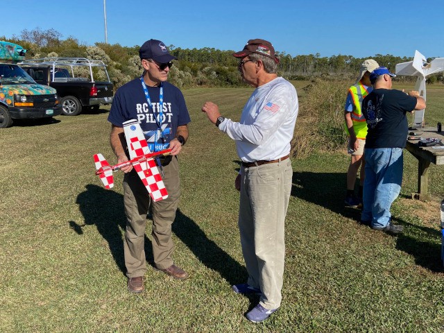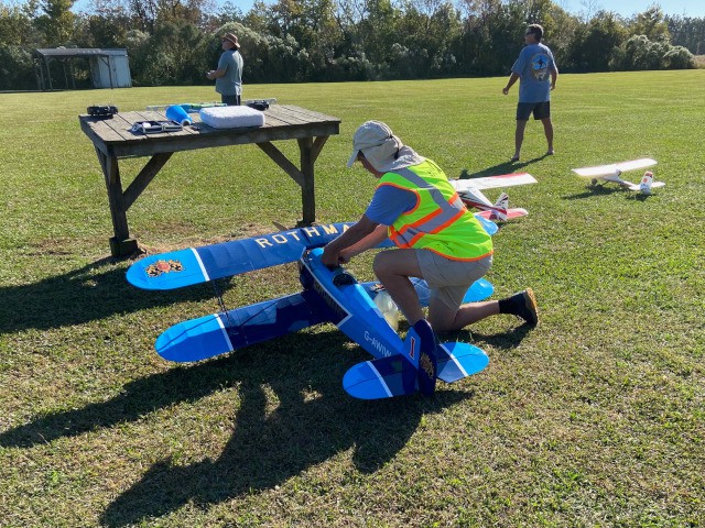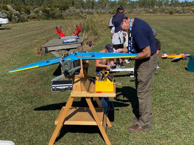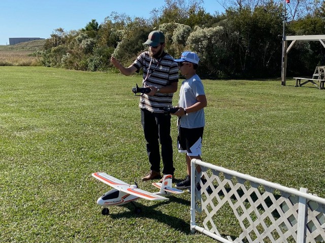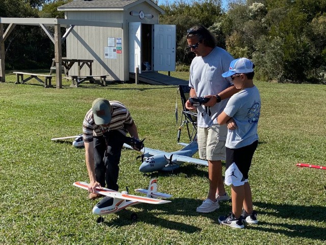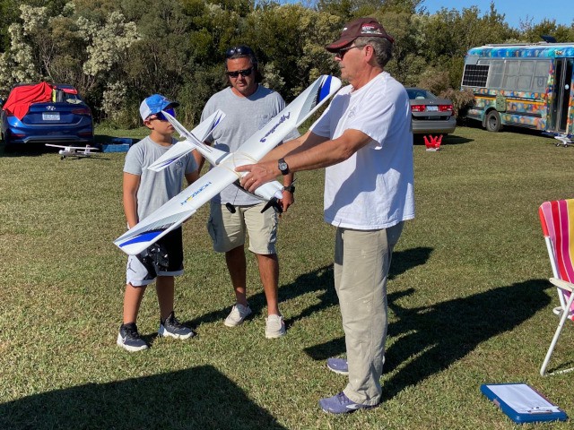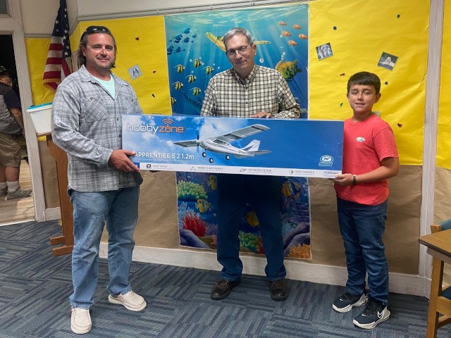 Our club conducted its monthly business meeting this evening, at which our club vice-president had the pleasure of presenting Brandon Fregans and his son, Gavin, with an Apprentice S2 ready-to-fly airplane that they won as the second-place prize at the Outer Banks Festival of Model Aviation on October 7, 2023.