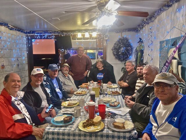 Since high winds made flying unsafe, ten of our members met for breakfast instead and used the morning to talk about recent club activities and model building projects at the Jolly Roger Restaurant.