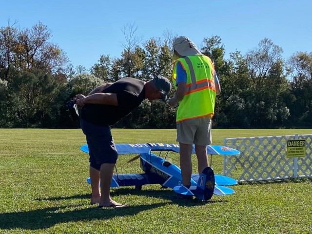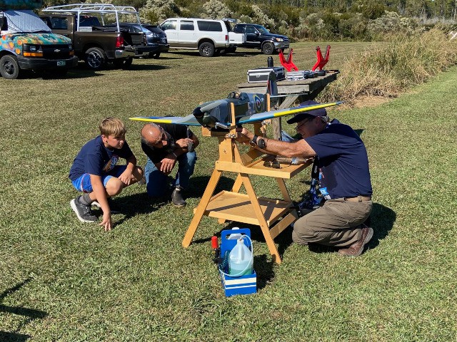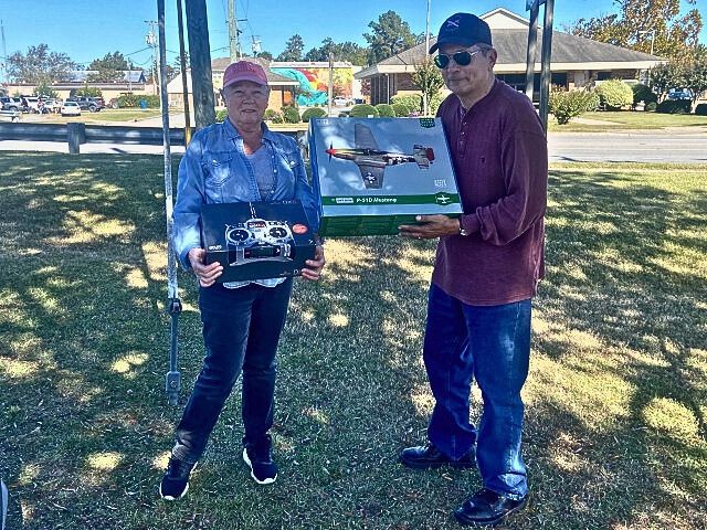 Following breakfast, Robert and Stephen Yanacek met Carole Korupp, to receive a donation of a small-scale radio control P-51 Mustang and a new-in-box Spektrum 6-channel DX6i transmitter. Carole had purchased these items as a Christmas gift for her husband, Richard, unfortunately he passed-away before receiving them. In the spirit of giving back to an activity that Richard enjoyed, Carole has graciously donated them to the club as a memorial gift in honor of her late-husband, asking us to provide them to a young member to enjoy and as a means to encourage their participation in model aviation.