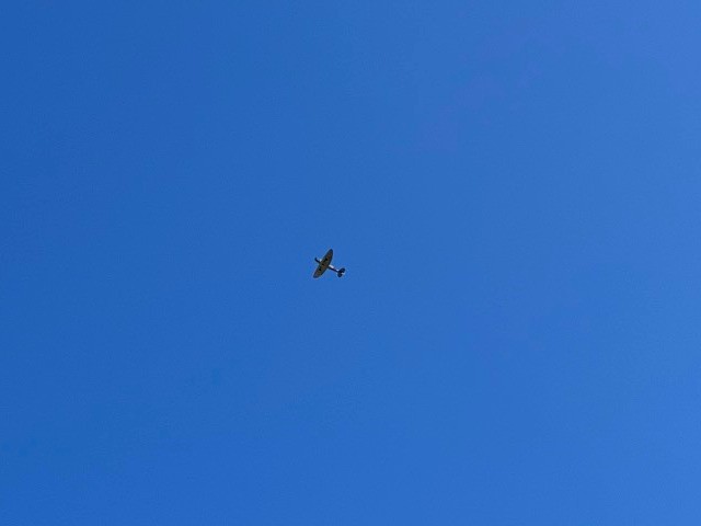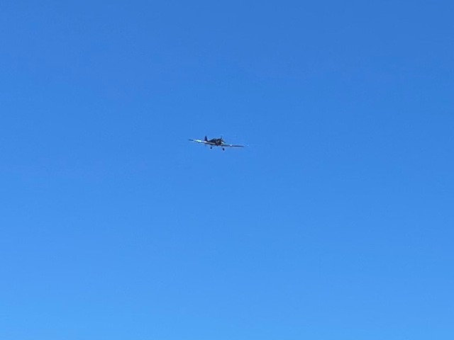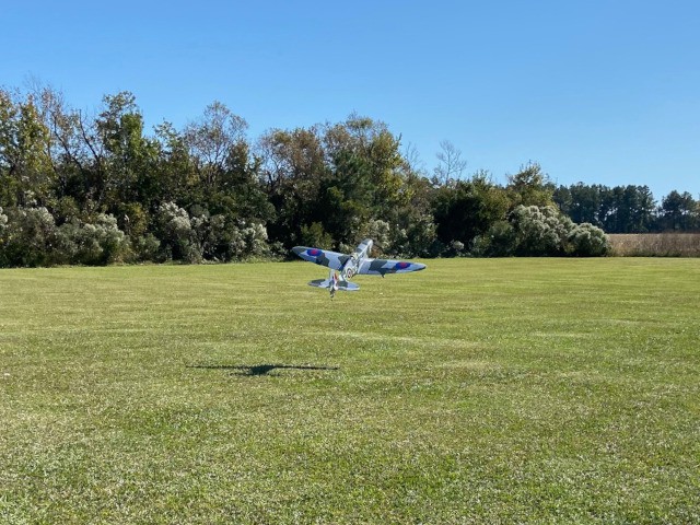 Jim Davis performed a maiden flight today with his Supermarine Spitfire. The flight went well, but unfortunately a second flight in which Jim was dog-fighting with Grant Dick's Spitfire ended with damage to his aircraft after the plane's receiver lost communications and went down in a corn field.