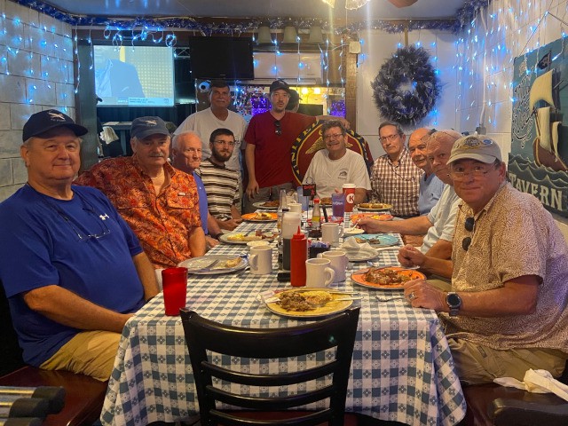 Mike Alexander, Charlie Doss, Jim Shiels, Stephen Yanacek, Harold Blakney, Philip Garey, Jim Davis, Robert Yanacek, Peter Fynn, Skip Wescott, and Jim Watters met today at the Jolly Roger Restaurant to finalize plans for the upcoming Outer Banks Festival of Model Aviation event.