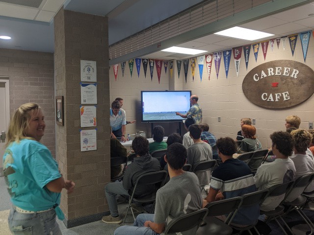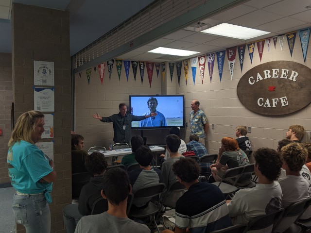 A busy day today for four club members who visited with forty-three students at First Flight High School in Kill Devil Hills to discuss pursuing radio control aviation as a hobby to acquire skills that could be used in the future within the developing drone industry.