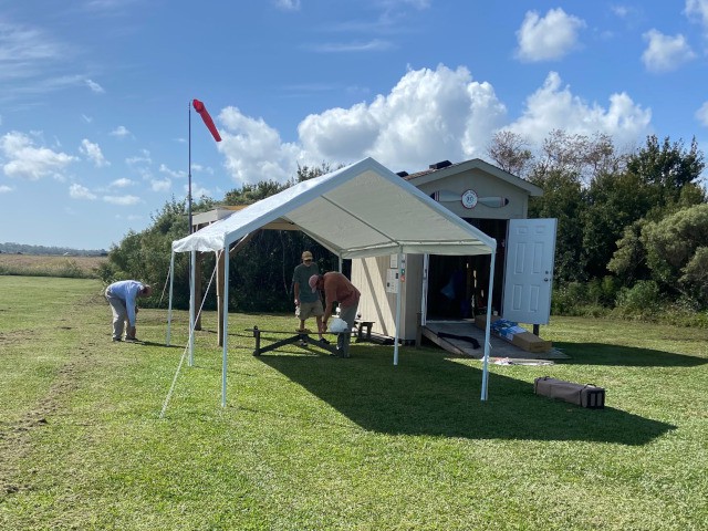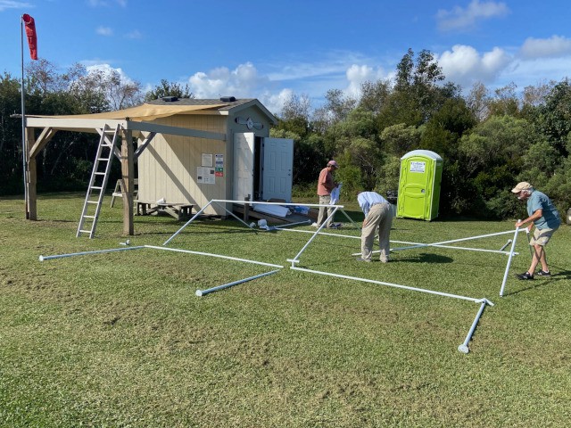 In preparation for our guests who will be attending the Outer Banks Festival of Model Aviation tomorrow, a team of five club members met at the field to set up for the event.