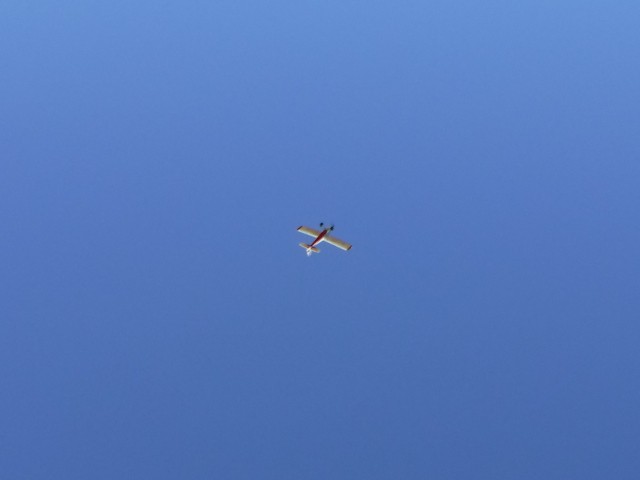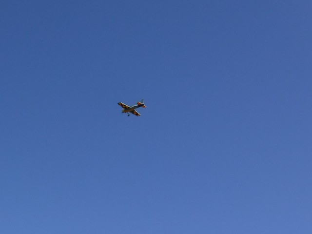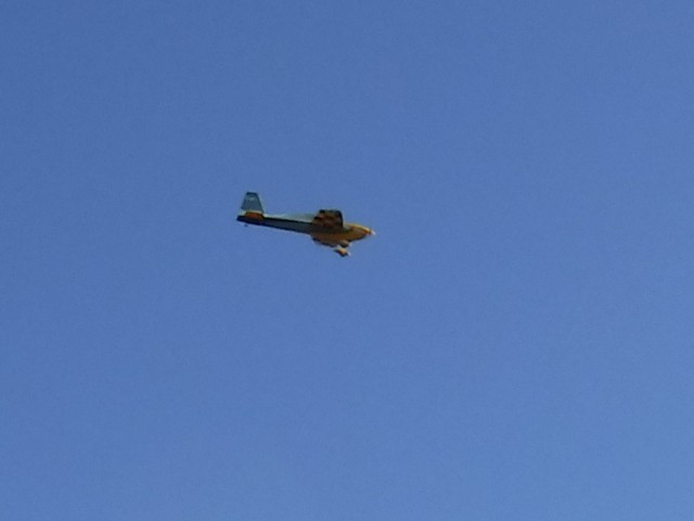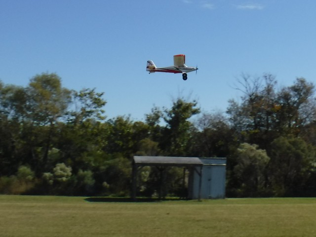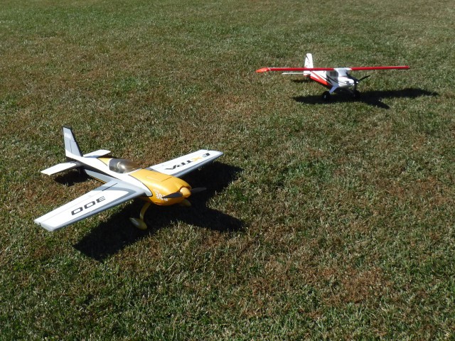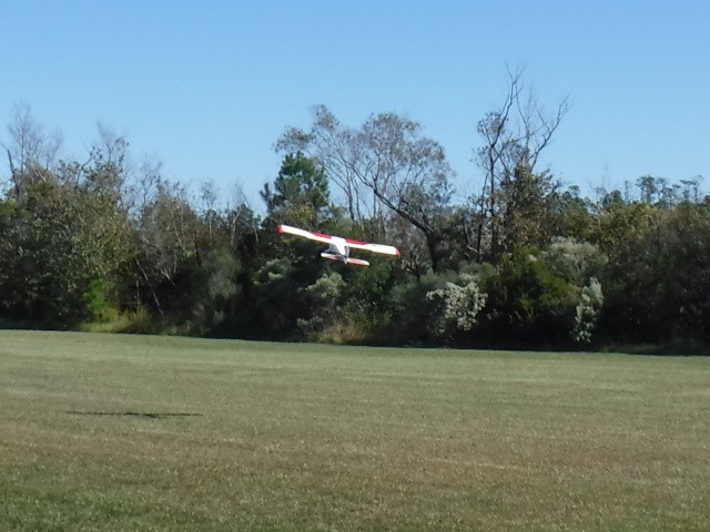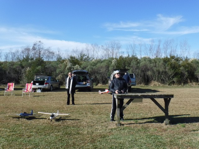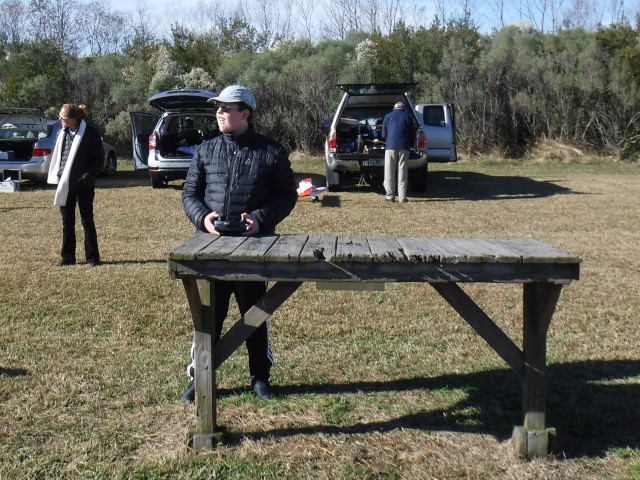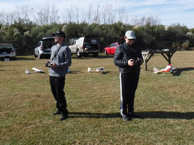 By the afternoon, our members had convinced Jonathan's mother, Georgia, that she too could learn to fly. With a fresh battery in the Valiant and a quick overview of flight control, Georgia was soon in the air with Stephen Yanacek acting as her flight instructor. Her flight went very well and she acknowledged that it was not as difficult as she expected.