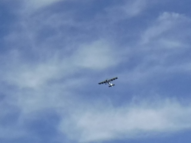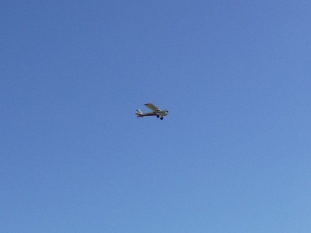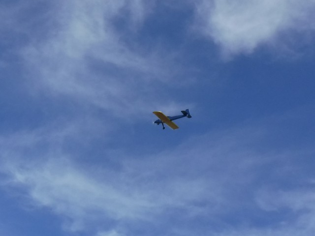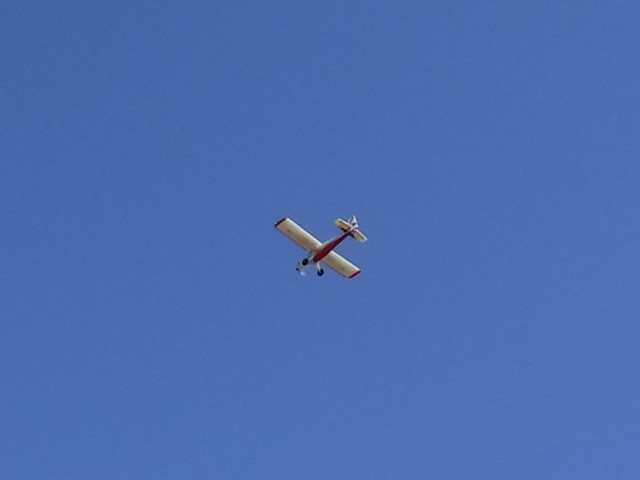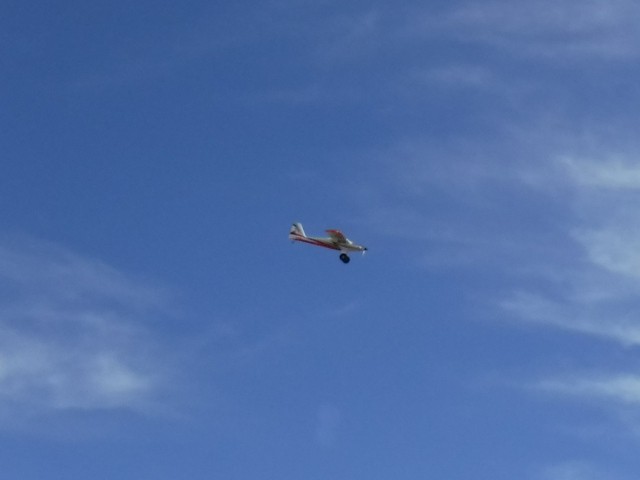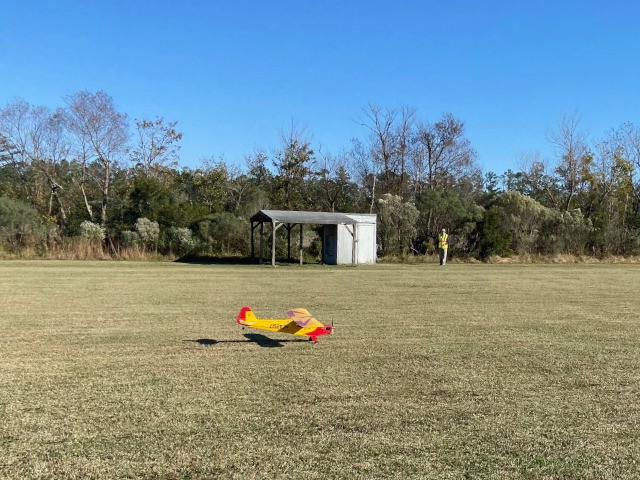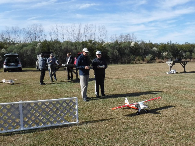 The day's activities featured Philip Garey successfully testing his auto-launch flight controller programming and a maiden flight for an aircraft that was given to Stephen Yanacek and rebuilt with an electric powered motor. Jim Shiels had some good flying with the mini-Moa glider he recently built and with his UMX Cessna 150. Jim Davis also performed aerobatics with his low wing black-colored monoplane and ended the day with a parachute drop from his Piper J-3 Cub.