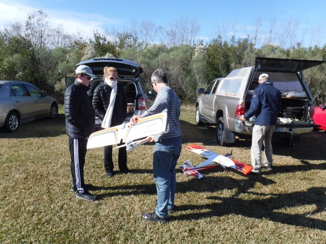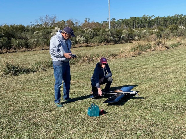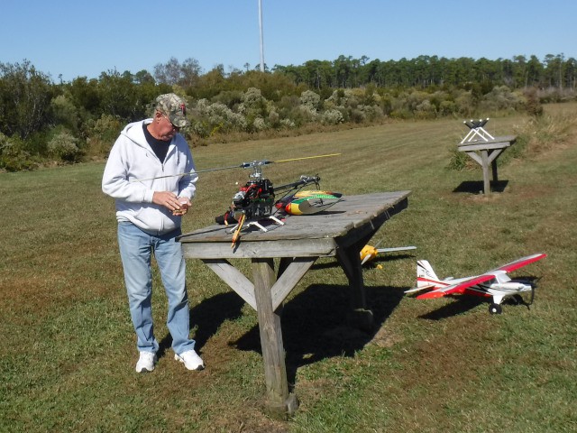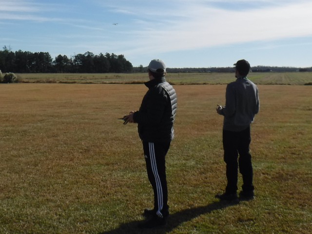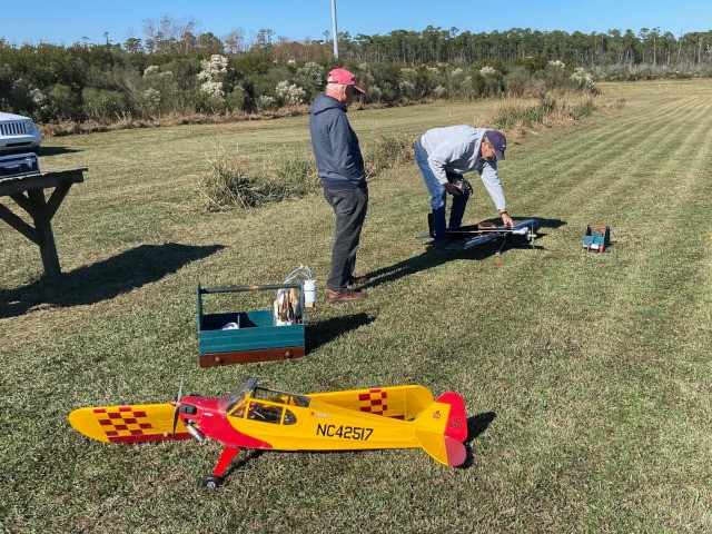 Two members of Sussex Aeromodelers went to the field to fly today, accompanied by two of our club members. Alex Zanow and Tom Perkins were visiting the Outer Banks this week and wanted to do some flying at the "Birthplace of Aviation." Our club was pleased to spend time with them as they flew their aircraft, which included a flight by Tom of his helicopter.