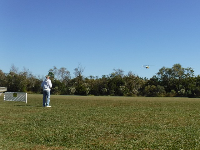 Closing the day's activities, Mike Kirkpatrick tried out Philip Garey's AeroScout that had been modified by Philip with a flight controller that locked-in altitude. Mike, who is new to flying and one of our newest members, had a really great time with this modification and the thrill he experienced was noted by all.