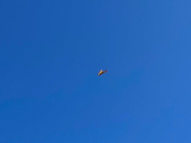 Following a quick safety brief, Jonathan, who is only twelve years old and also a new pilot, was in the air with his AeroScout S2. Despite some challenging winds above the treeline, he performed his flight using his plane's beginner flight mode very well, and ended with a good landing. While charging his battery and waiting for his next flight, Jonathan and Georgia watched and received some tips from other club members as they flew their aircraft, and learned about First-Person-View (FPV) flying that a number of our members use regularly. Jonathan's next flight went even better as our members talked him through performing his very first loop after switching-off his beginner flight mode. Jonathan did so well he was invited to fly Peter Fynn's 1.5m Turbo Timber Evolution which he did under Peter's watchful eyes. After watching a few drone and FPV flights, Jonathan then flew a 1.4m E-flite Valiant, belonging to our club's vice-president, as Stephen Yanacek talked him through is first takeoff and landing with a tail-dragger aircraft.