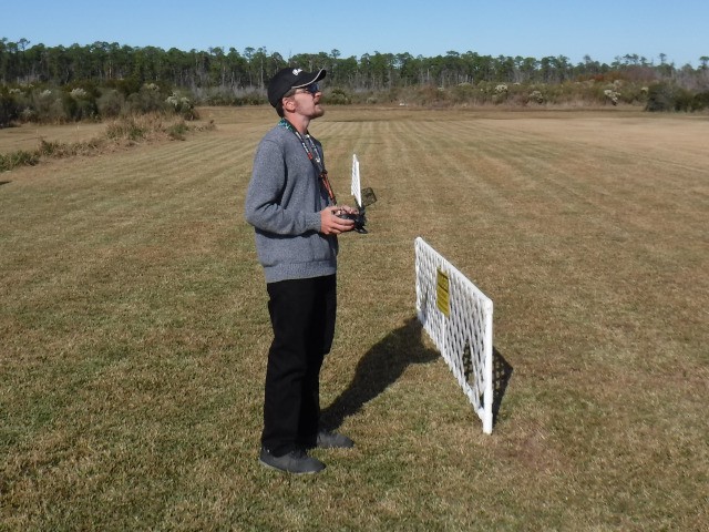 Middle-school student, Jonathan, accompanied by his mother, Georgia, joined four of our club members for breakfast this morning at the Jolly Roger restaurant in Kill Devil Hills. Following breakfast, we drove to the flying field, and by 10AM we had planes in the air!