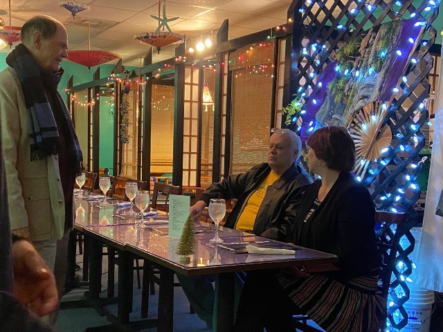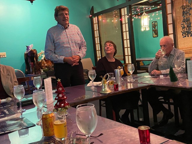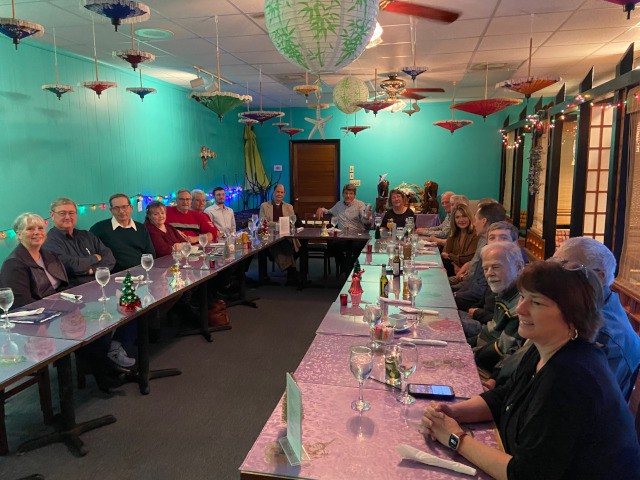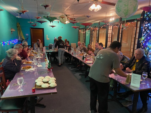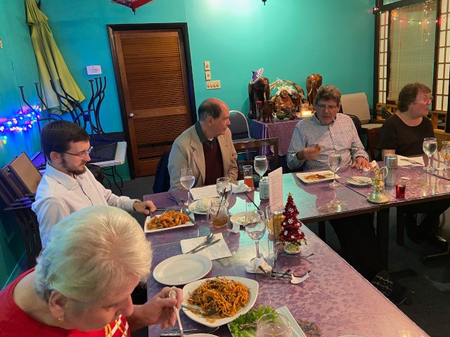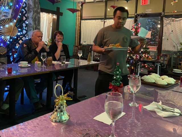 Dinner was plentiful and delicious, and the courteous and professional service provided by our host, Jao Oira, was noteworthy. Our club members and their dates used their dinner time to chat and learn a bit more about each other, and the ladies have made plans to keep in touch with each other and become more involved with the club. Overall, everyone had a great time and our celebration of friendship and fellowship this evening was a perfect way to begin the Christmas season.