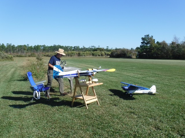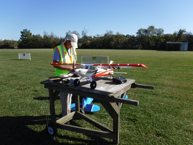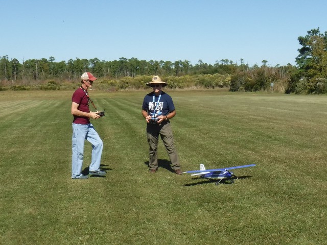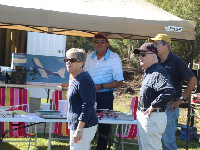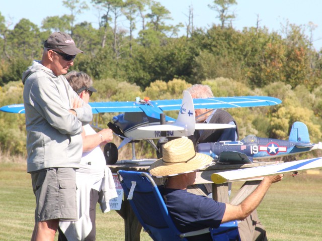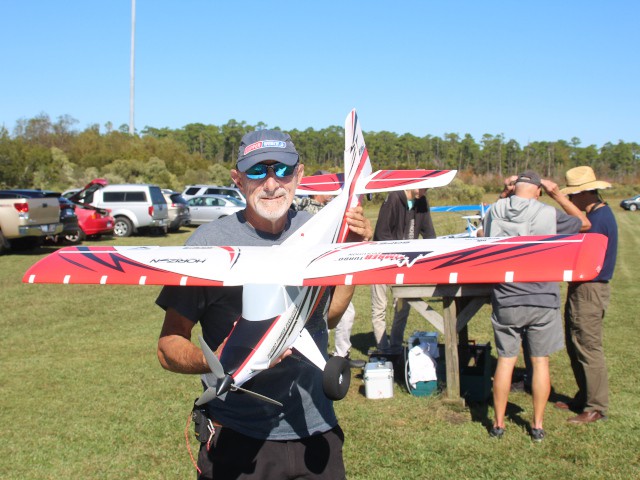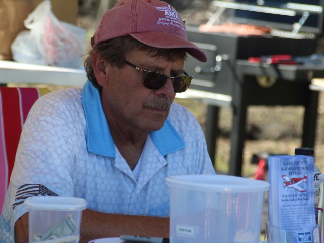 Following lunch, flight operations continued until 4PM. Our club then conducted a drawing to determine the winner of our first-time flyer raffle. The winner was Harold Blakney who claimed his prize consisting of a ready-to-fly AeroScout airplane, and one-year memberships to Dare County Radio Control Flyers and the Academy of Model Aeronautics (AMA). Three other tickets were drawn as "runners-up" and these guests will be notified shortly that they will receive a one-year membership to the AMA, provided they commit to continue pursuing model aviation by applying for membership to our club.