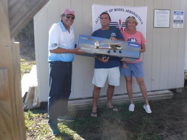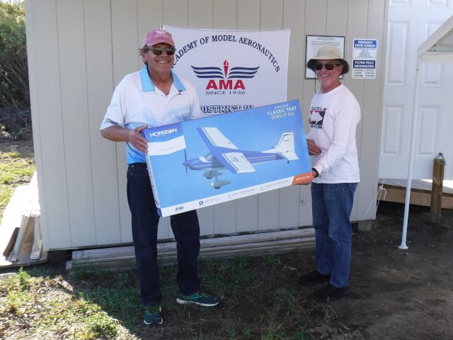 A second raffle was also held for a ready-to-fly Valiant airplane that included a one-year AMA membership. Tickets for this raffle were made available to our guests for purchase with the understanding that if their ticket was selected, they would become a club member. The winner of this raffle was Mile Kirkpatrick who was present and has claimed his prize.