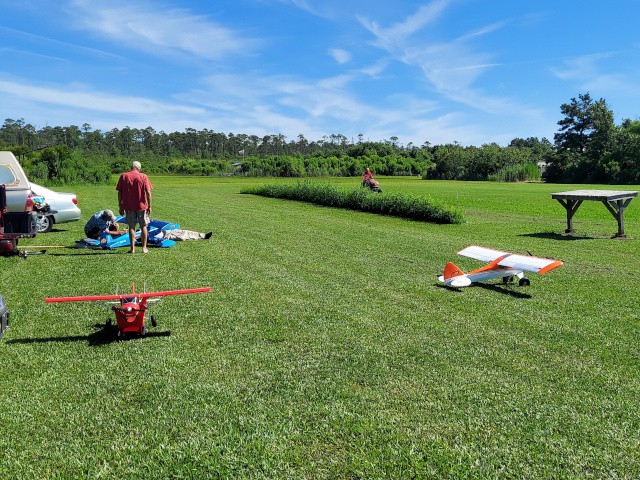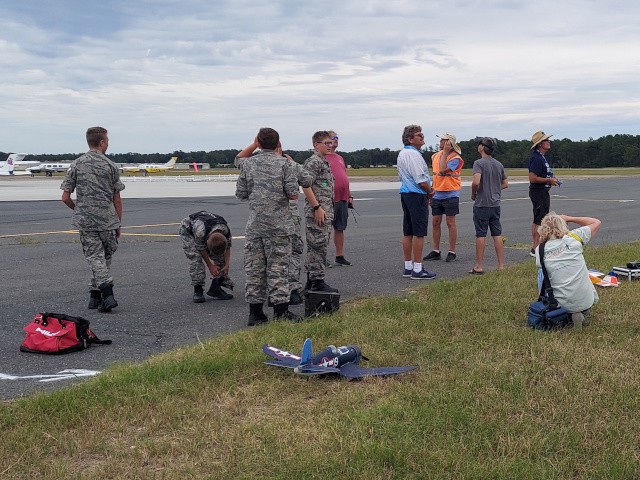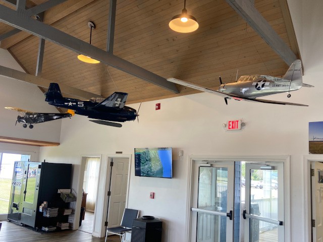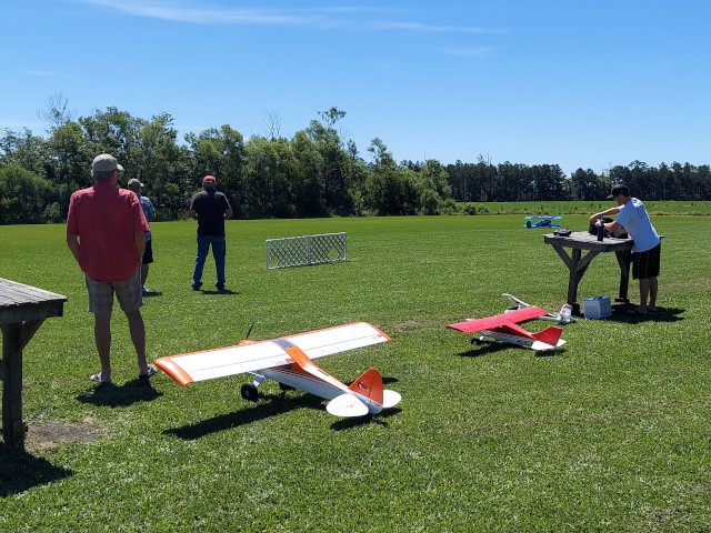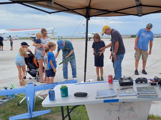 Nine of our club members set up a display of model aircraft for visitors at the 2022 National Aviation Day at the county's regional airport in Manteo. This event is hosted annually by the First Flight Society to celebrate Orville Wright's birthday and included a collection of full-size aircraft and displays by various aviation-related organizations.