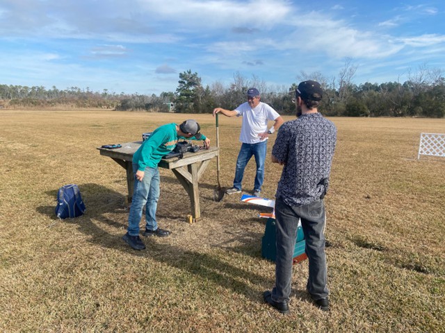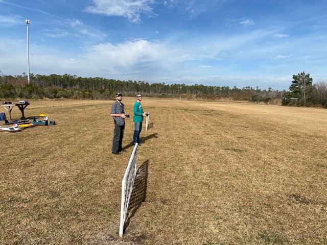 Our day began with club president, Jim Davis, leading the effort to stake out the location for the placement of the pilings for the construction of our new storage shed that will begin later this month. Following this task, members turned to flying.