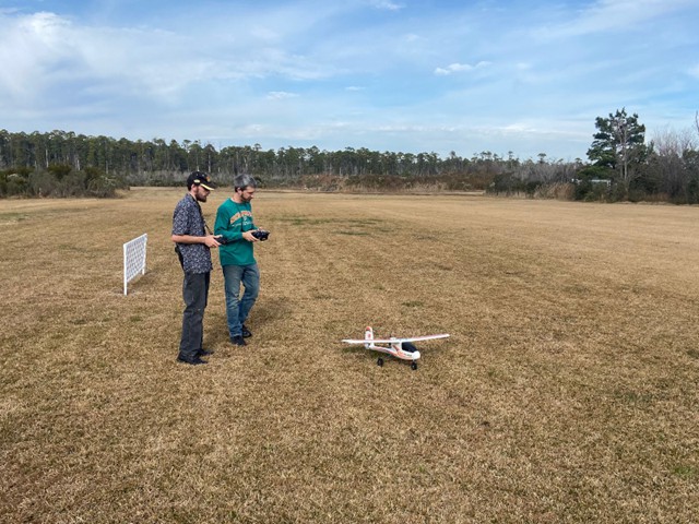 Under the supervision of Stephen Yanacek, our newest member, Richard Boyd successfully flew for the first time. Richard did quite well and is looking forward to some more flying in the future. One of our guests, Philip Garey brought a number of First-Person-View (FPV) drones and amazed our members by following and filming the flight of both Jim Davis and Peter Fynn. Philip was also afforded an opportunity to try his hand at flying an airplane—and did remarkably well by also successfully taking off and landing without assistance.