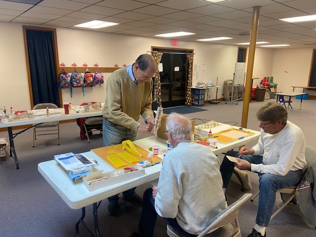 Jim Davis, Steve Smith, Philip Garey, Richard Boyd, Stephen Yanacek, Matt Cooke, Kolton Cooke, Robert Yanacek, and Jim Shiels met tonight to learn some basic model airplane building skills.