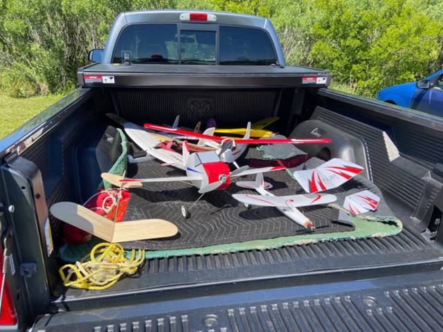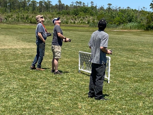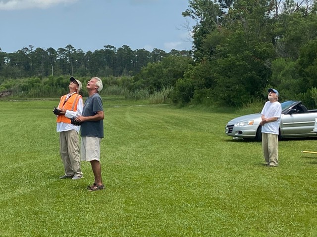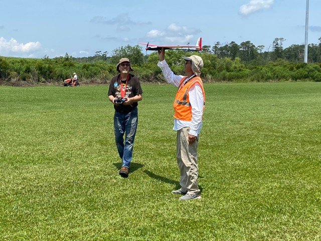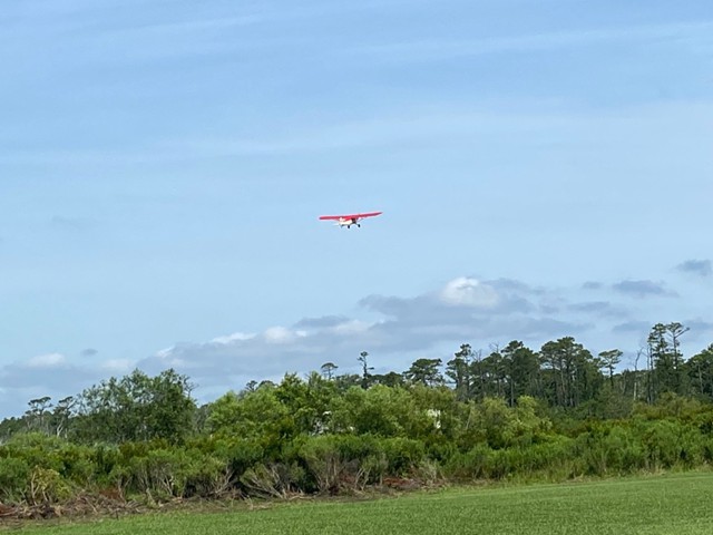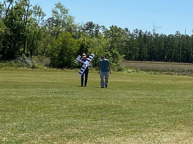 Eight of our members participated in a series of many flights today at our field in Manns Harbor. The wind was challenging with velocities higher than predicted, however all of our pilots performed well, enjoyed the flying and camaraderie, and brought their aircraft home without damage.