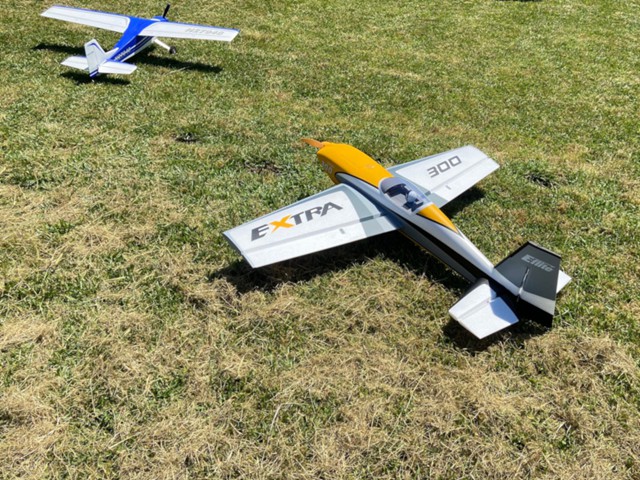 We also welcomed a new member, Allen Massey, to our club today. Allen had flown radio control planes in the past, and despite a 20 year hiatus, he performed two flights very well with Robert Yanacek's popular Valiant aircraft. Allen also brought his new plane, a beautiful E-flite Extra 300, to the field for "show and tell."