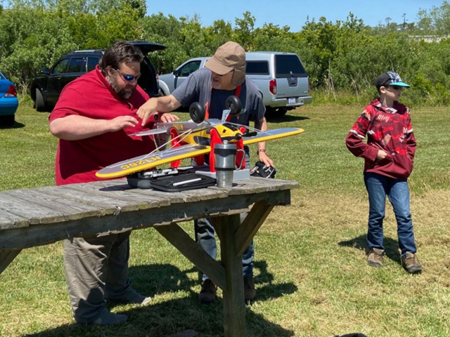 Our father and son team of Rick and Kevin Gadzalinski brought their new E-flite Carbon Cub S2 for its maiden flight, and both of them performed a number of flights and did very well.