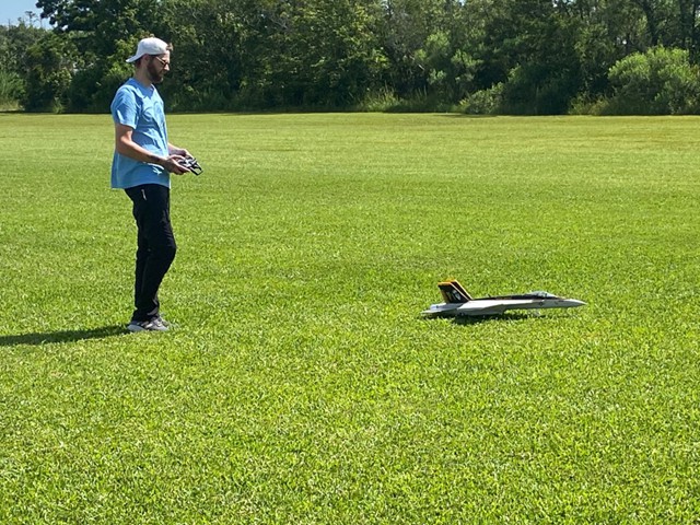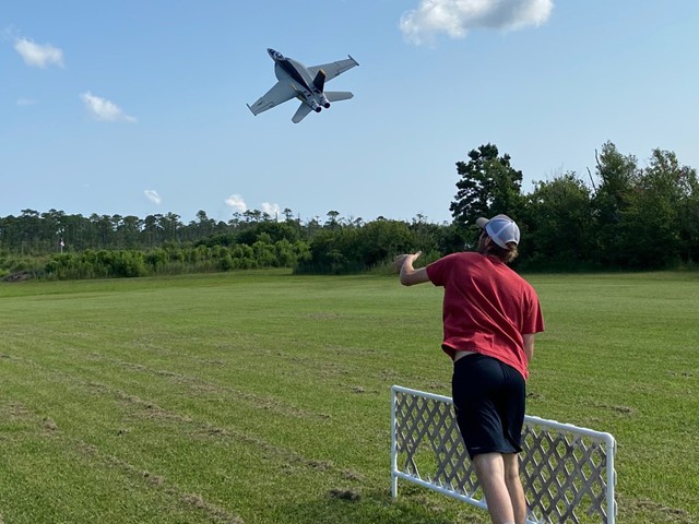 Matthew Huggins flew for the first time with our club and displayed excellent control and aerobatic skills with his DHC-2 Beaver. Matthew's maiden flight of his Freewing F-18 Hornet was stunning, but cut short when he lost his plane's motor in a puff of smoke after pushing his throttle wide open. Nonetheless, he was able to perform a beautiful dead-stick landing and recover his aircraft intact.