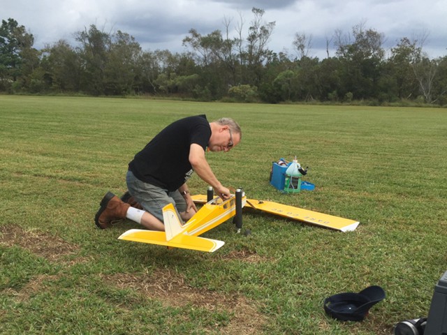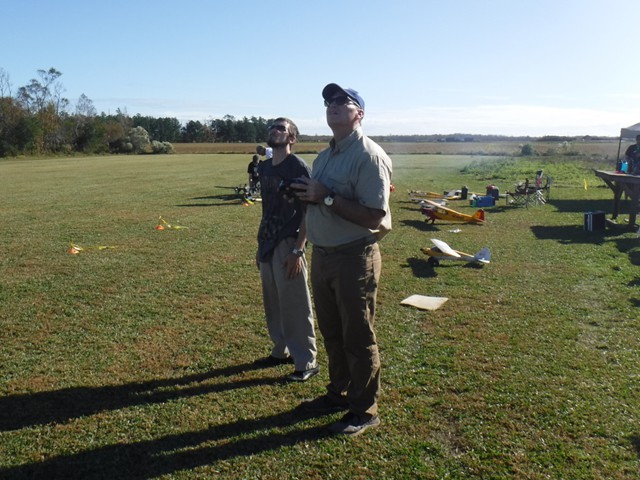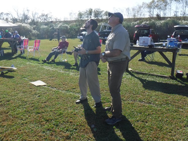 Flight operations commenced about noon, with each of our members taking turns flying various aircraft. Under the watchful eyes of instructor Jim Davis, student pilot Robert Yanacek also performed a maiden flight on his E-flite Valiant 480E.
