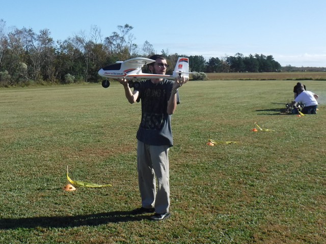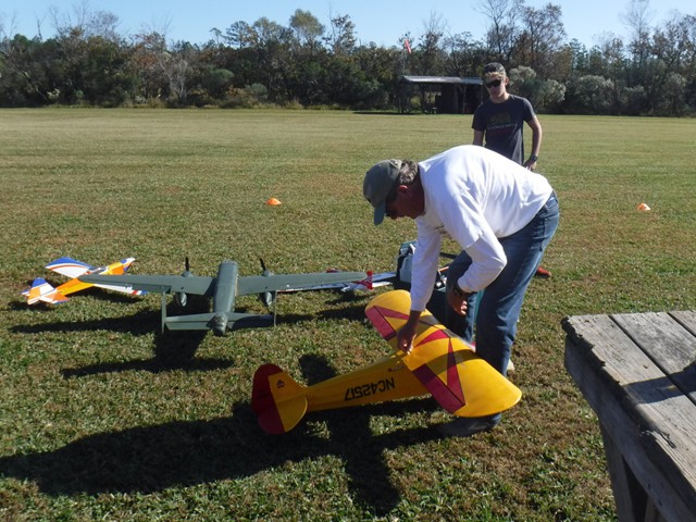 Stephen Yanacek soloed today with his HobbyZone AeroScout S, then performed a second solo flight. Our guest, Destin Tomblin, performed a flight with the club's HobbyZone J-3 Cub, and a second flight with Stephen Yanacek's AeroScout S under the supervision of flight instructors Steve Smith and Peter Fynn. Jim Davis performed a good flight with his Sig Four-Star that he converted to electric power this past winter. Peter Fynn then treated everyone with a scale flight of his large PA-12 which ended in a superb landing. Grant Dick flew his F4U Corsair once again thrilling all with his aerobatic skills, followed by Steve Smith with at least one flight with his Ugly Stick nitro-powered monoplane. Jim Shiels brought and flew number of smaller electric-powered airplanes—all of which performed well. Grant Dick, Jim Davis, and Peter Fynn ended the day's flight operations with flights on additional aircraft that each brought to the field.