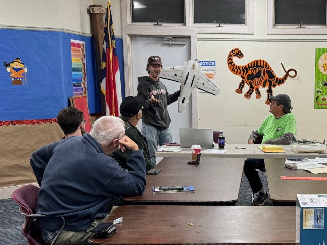 At our October monthly business meeting we set an attendance record with 23 members present. The highlight of the meeting was undoubtedly introducing eleven of our new members who were able to attend and presenting the prizes to our raffle winners from the Outer Banks Festival of Model Aviation.