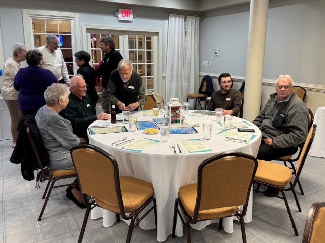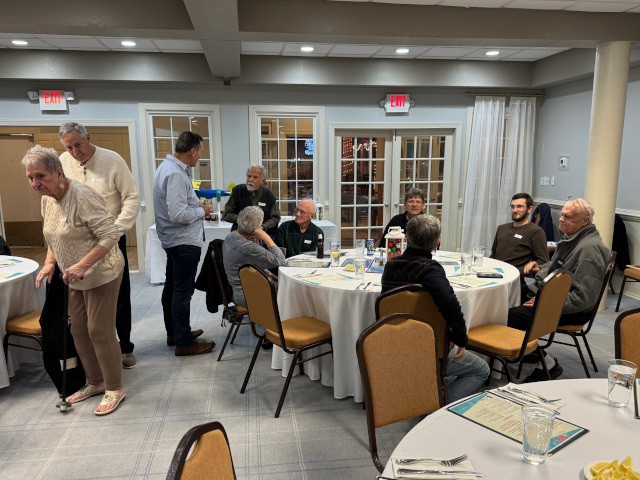 Frank Ausband, Pete Carros, Peter Fynn, Skip Wescott, John Watkins, Jim Davis, Jim Shiels, Diane Yanacek, Rose Carros, Charlie Doss, and Robert Yanacek attended, in addition to our two guests—John and Wendy Stanton.