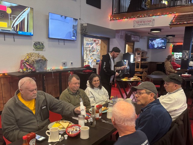Since flying conditions were poor today because of high winds, eleven of our club members decided to meet up at the Jolly Roger for breakfast and conversations about their recent projects and activities.