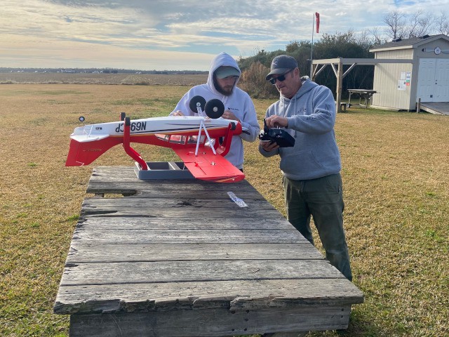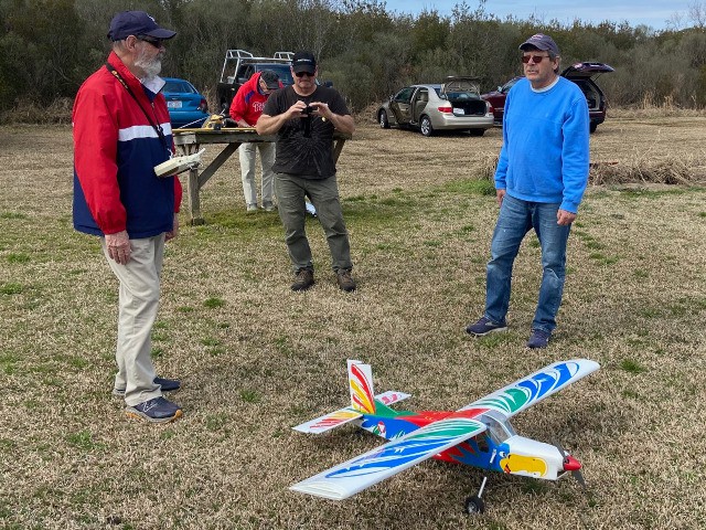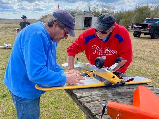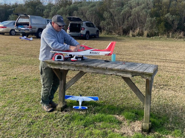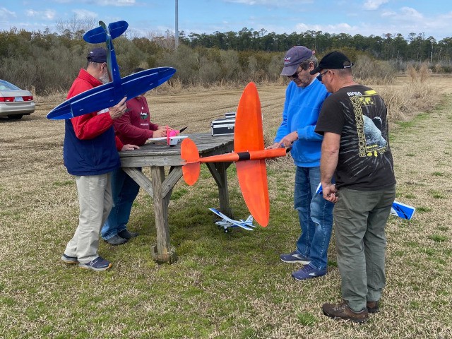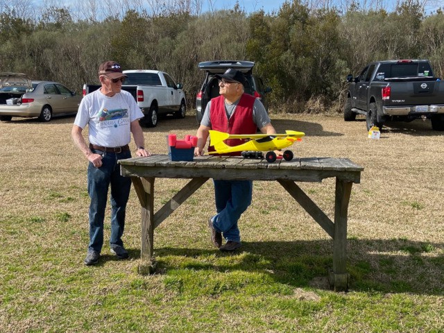Our guest, John Watkins, recently contacted us to learn more about the hobby and club membership, and since conditions at the field were too wet due to the recent volume of rain, we decided to meet as a group to provide him with information and encouragement.