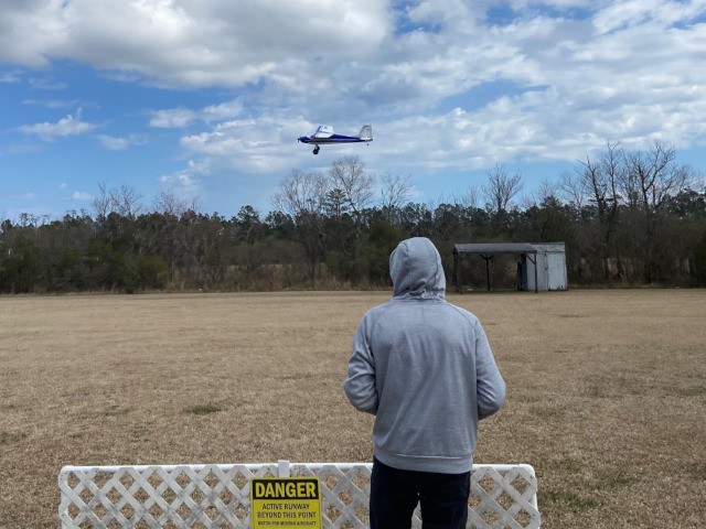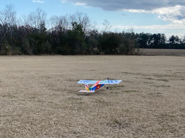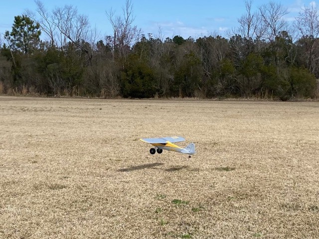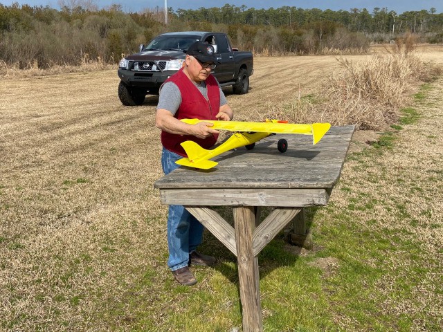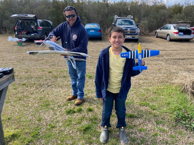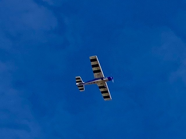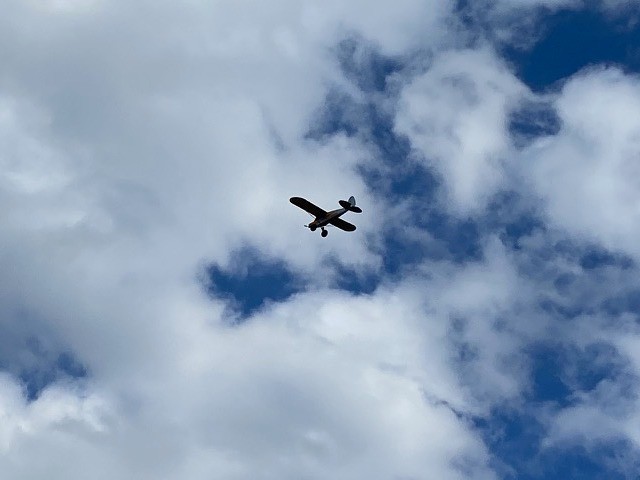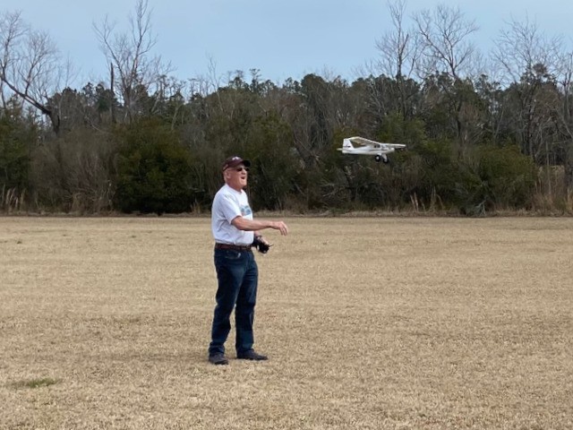 The highlight of the day was getting our newest member, John Waktins, into the air for his first flight. Assisted by instructor, Stephen Yanacek, John flew Robert Yanacek's Valiant well, and performed his first takeoff. Stephen then assisted John in conducting a maiden flight with his new yellow and silver Carbon Cub S2.