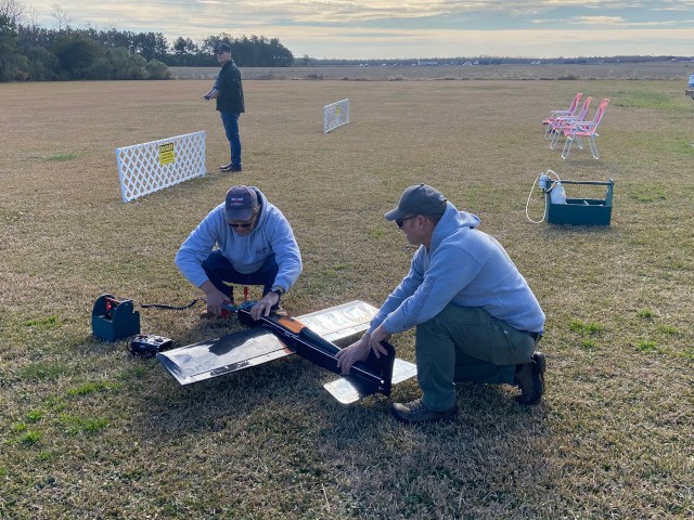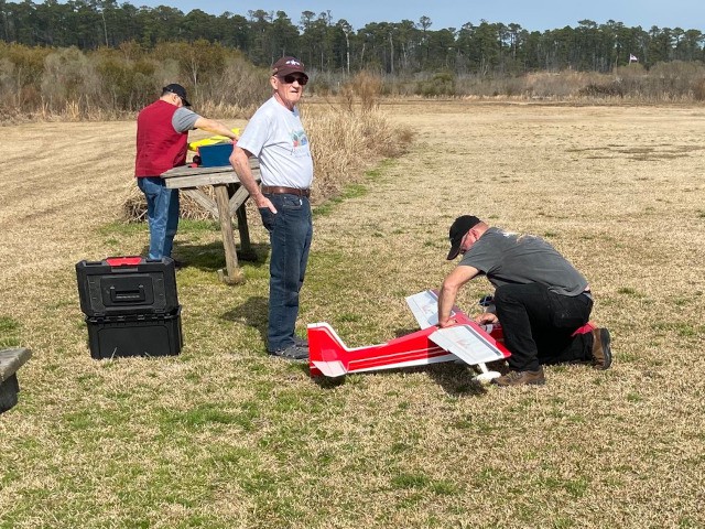 Following breakfast, six of our nine pilots decided to head to the field to fly. Although the field was damp due to rain overnight, the conditions for flying were very good and we had an added bonus of temperatures in the mid-60s.