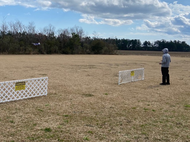 Conditions at the field proved to be good with low winds and temperatures in the mid-50s, so our members immediately commenced flight operations. Many sorties were flown, including Jim Davis and Pete Carros trying out their FliteTest Spitfires that they recently completed for our upcoming pylon racing event. Peter Fynn also conducted a well-performed maiden flight with his new brightly-colored Pilatus PC-6 Porter. One of our younger members, Gavin Fregans, flew his Apprentice S2 and impressed everyone with his skill as a pilot.